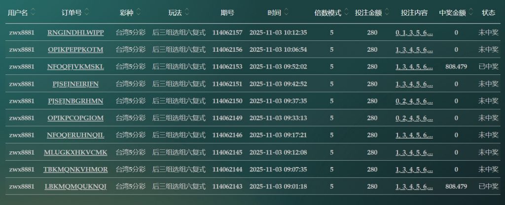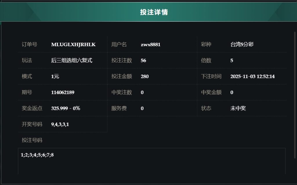 2025/11/03台湾5分彩后三组选组六复式 单日盈利7385 by MX联盟 | 11 月 3, 2025 | 盈亏报表 | 0 comments Submit a Comment 取消回覆發佈留言必須填寫的電子郵件地址不會公開。 必填欄位標示為 *留言 * 顯示名稱 * 電子郵件地址 * 個人網站網址 在瀏覽器中儲存顯示名稱、電子郵件地址及個人網站網址,以供下次發佈留言時使用。
