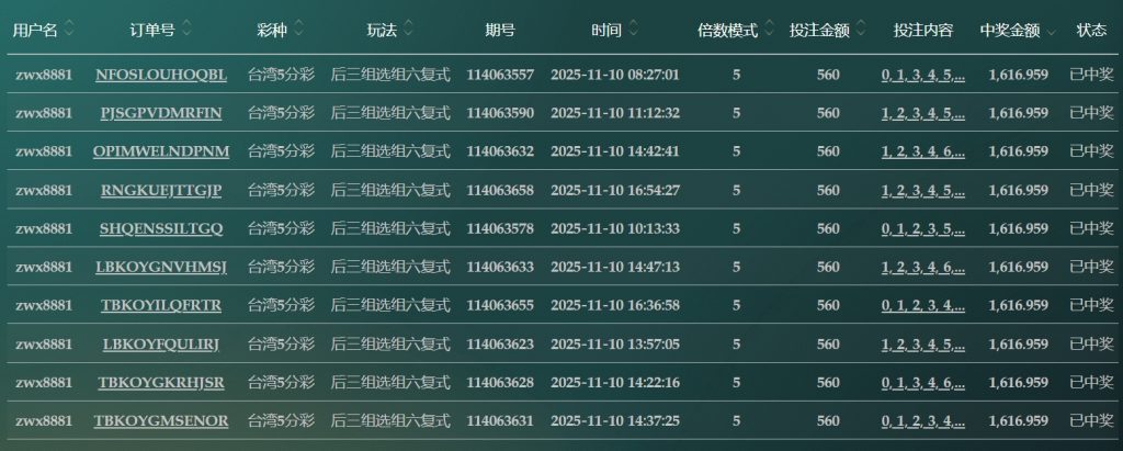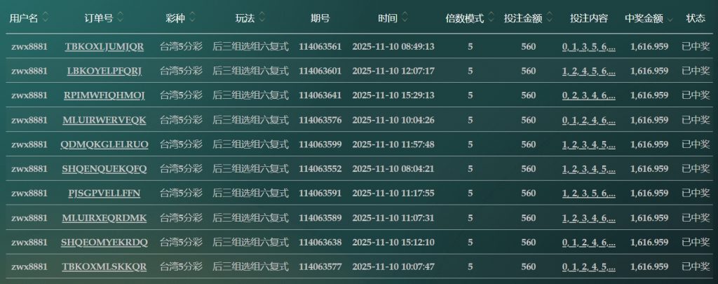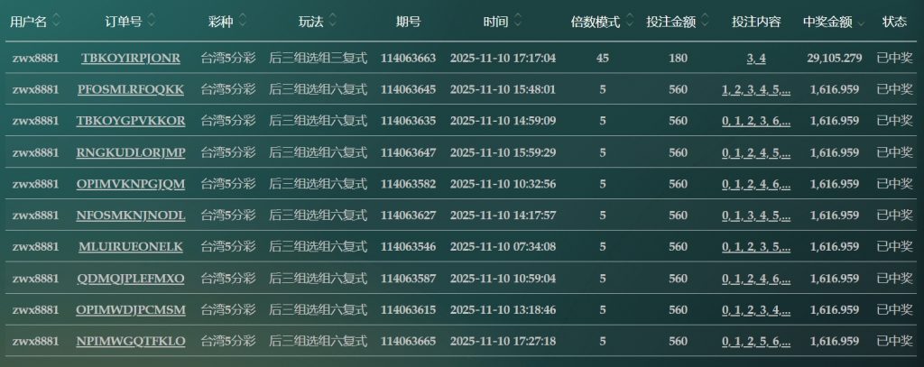 2025/11/10台湾5分彩后三组选组六复式 单日盈利14667 by MX联盟 | 11 月 10, 2025 | 盈亏报表 | 0 comments Submit a Comment 取消回覆發佈留言必須填寫的電子郵件地址不會公開。 必填欄位標示為 *留言 * 顯示名稱 * 電子郵件地址 * 個人網站網址 在瀏覽器中儲存顯示名稱、電子郵件地址及個人網站網址,以供下次發佈留言時使用。