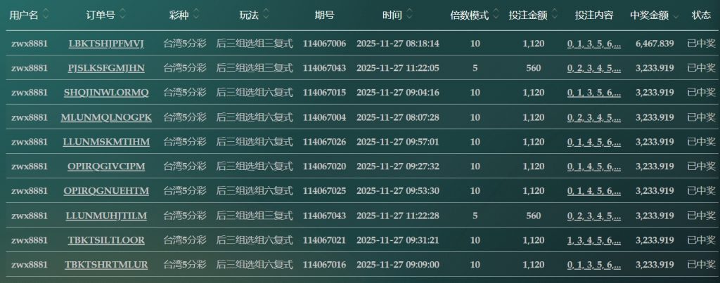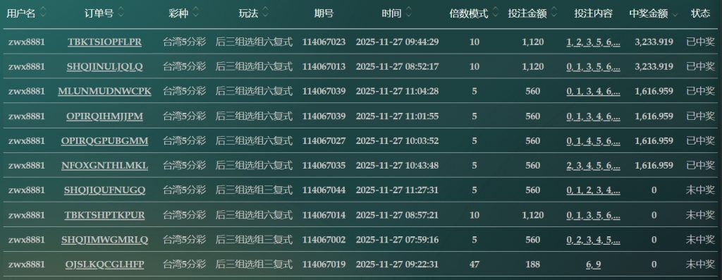 2025/11/27台湾5分彩后三组选组三复式 单日盈利10090 by MX联盟 | 11 月 27, 2025 | 盈亏报表 | 0 comments Submit a Comment 取消回覆發佈留言必須填寫的電子郵件地址不會公開。 必填欄位標示為 *留言 * 顯示名稱 * 電子郵件地址 * 個人網站網址 在瀏覽器中儲存顯示名稱、電子郵件地址及個人網站網址,以供下次發佈留言時使用。
