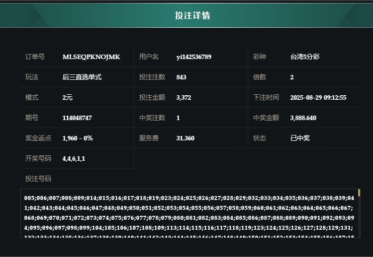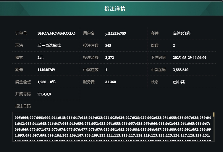 「2025/08/29」台湾5分彩 前三直选单式 单日盈利3795 by MX联盟 | 8 月 29, 2025 | 盈亏报表 | 0 comments Submit a Comment 取消回覆發佈留言必須填寫的電子郵件地址不會公開。 必填欄位標示為 *留言 * 顯示名稱 * 電子郵件地址 * 個人網站網址 在瀏覽器中儲存顯示名稱、電子郵件地址及個人網站網址,以供下次發佈留言時使用。