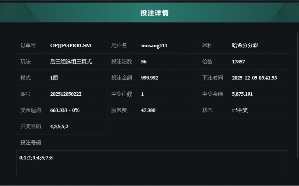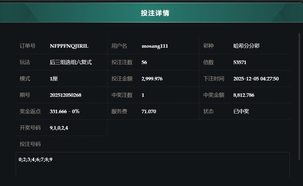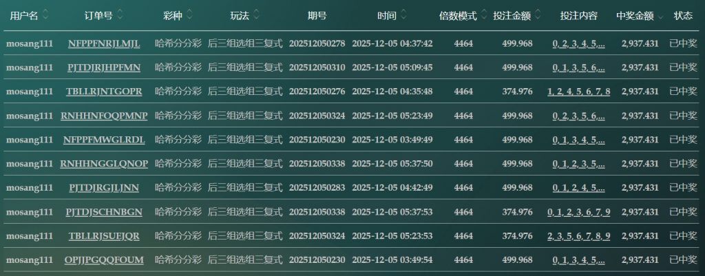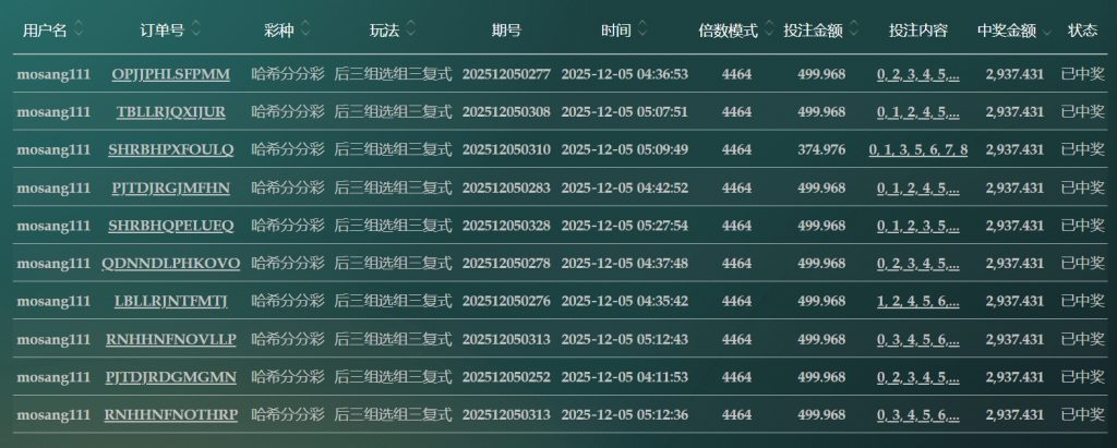 2025/12/05哈希分分採后三组选组六复式 单日盈利73599 by MX联盟 | 12 月 5, 2025 | 盈亏报表 | 0 comments Submit a Comment 取消回覆發佈留言必須填寫的電子郵件地址不會公開。 必填欄位標示為 *留言 * 顯示名稱 * 電子郵件地址 * 個人網站網址 在瀏覽器中儲存顯示名稱、電子郵件地址及個人網站網址,以供下次發佈留言時使用。
