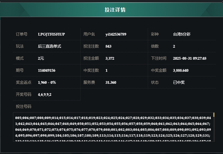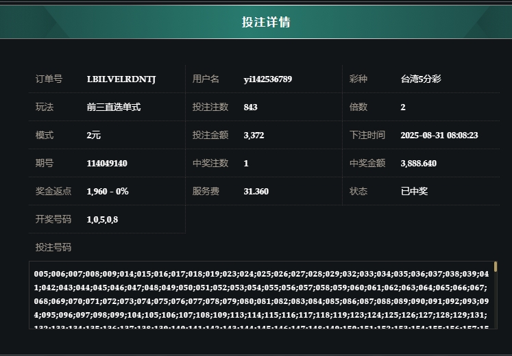 「2025/08/31」台湾5分彩前三直选单式 单日盈利3917 by MX联盟 | 8 月 31, 2025 | 盈亏报表 | 0 comments Submit a Comment 取消回覆發佈留言必須填寫的電子郵件地址不會公開。 必填欄位標示為 *留言 * 顯示名稱 * 電子郵件地址 * 個人網站網址 在瀏覽器中儲存顯示名稱、電子郵件地址及個人網站網址,以供下次發佈留言時使用。