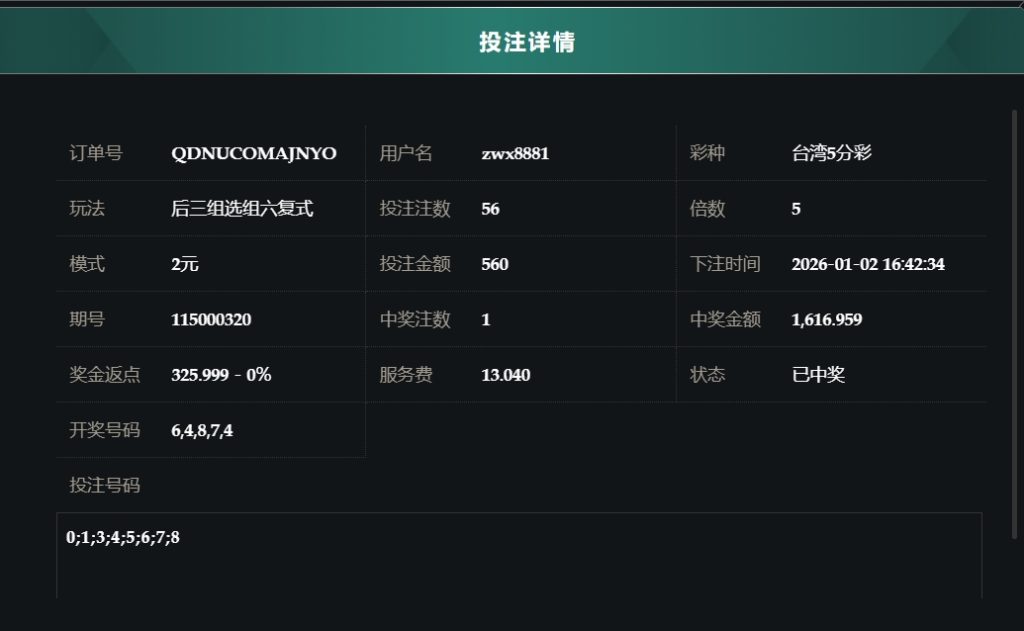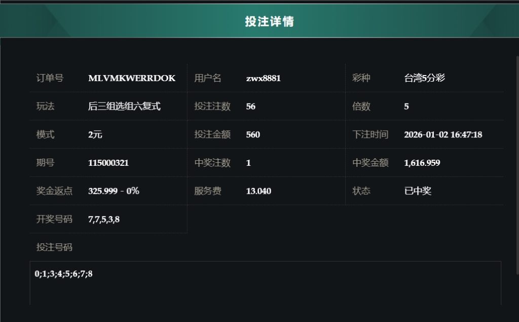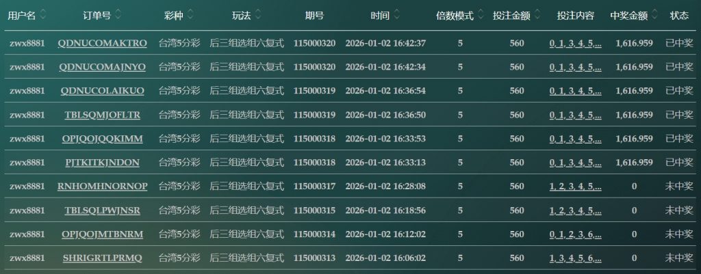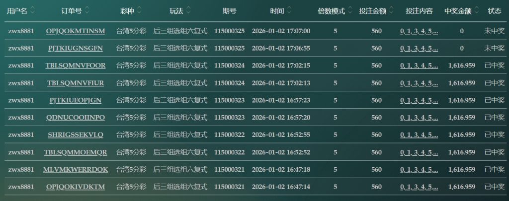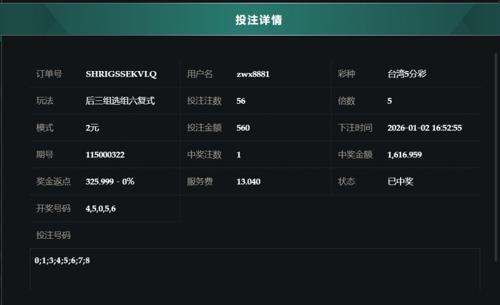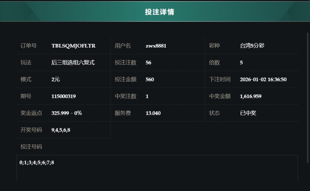 2025/01/02台湾5分採后三组选组六复式 单日盈利9199 by MX联盟 | 1 月 2, 2026 | 盈亏报表 | 0 comments Submit a Comment 取消回覆發佈留言必須填寫的電子郵件地址不會公開。 必填欄位標示為 *留言 * 顯示名稱 * 電子郵件地址 * 個人網站網址 在瀏覽器中儲存顯示名稱、電子郵件地址及個人網站網址,以供下次發佈留言時使用。