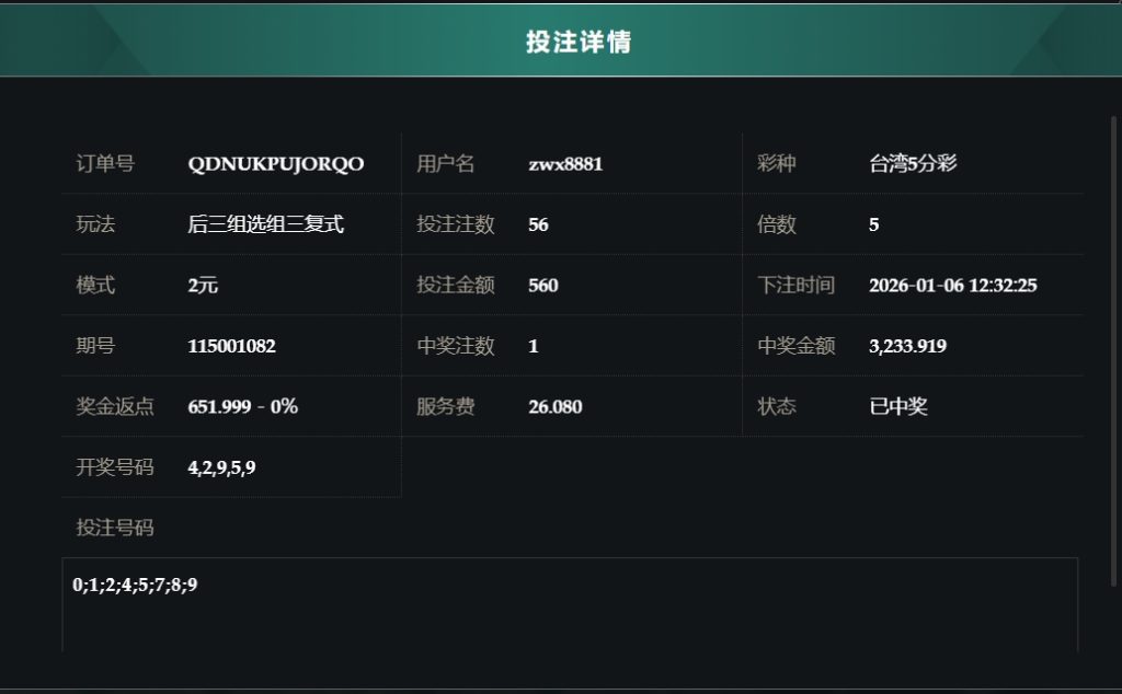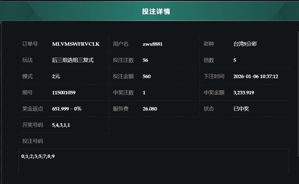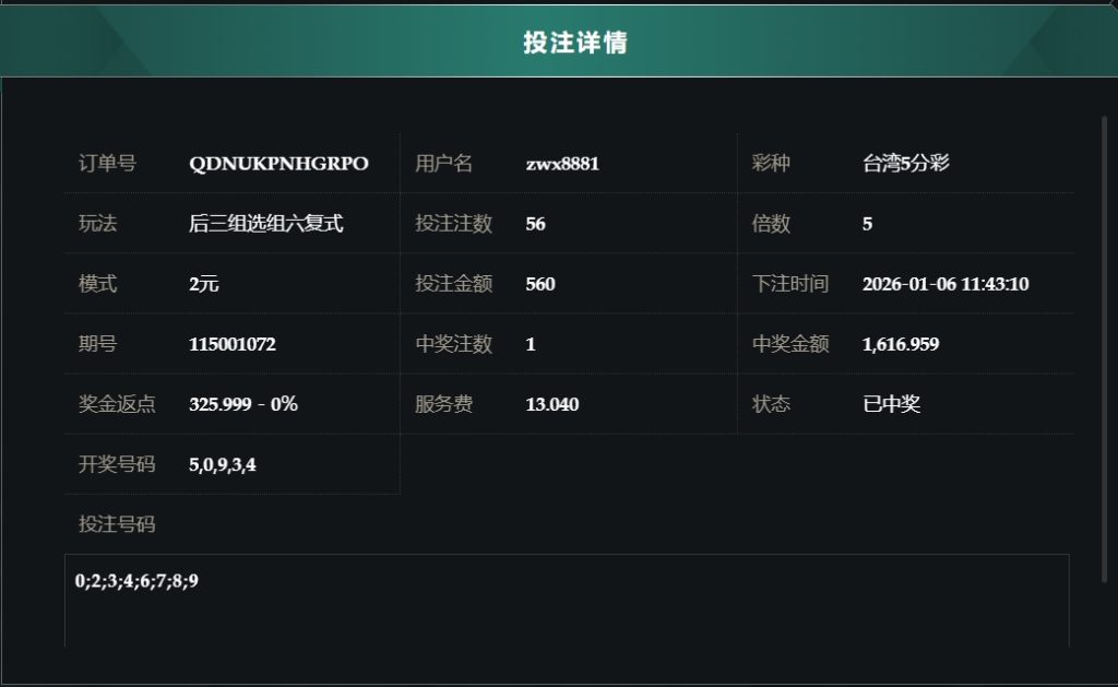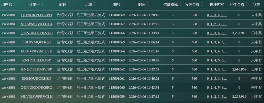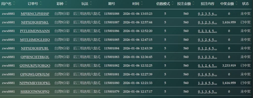 2025/01/06台湾5分採后三组选组六复式 单日盈利4787 by MX联盟 | 1 月 6, 2026 | 盈亏报表 | 0 comments Submit a Comment 取消回覆發佈留言必須填寫的電子郵件地址不會公開。 必填欄位標示為 *留言 * 顯示名稱 * 電子郵件地址 * 個人網站網址 在瀏覽器中儲存顯示名稱、電子郵件地址及個人網站網址,以供下次發佈留言時使用。