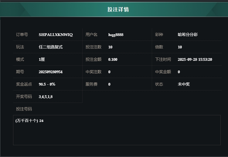 「2025/09/28」哈希分分彩任二组选复式 单日虧損1991 by MX联盟 | 9 月 28, 2025 | 盈亏报表 | 0 comments Submit a Comment 取消回覆發佈留言必須填寫的電子郵件地址不會公開。 必填欄位標示為 *留言 * 顯示名稱 * 電子郵件地址 * 個人網站網址 在瀏覽器中儲存顯示名稱、電子郵件地址及個人網站網址,以供下次發佈留言時使用。